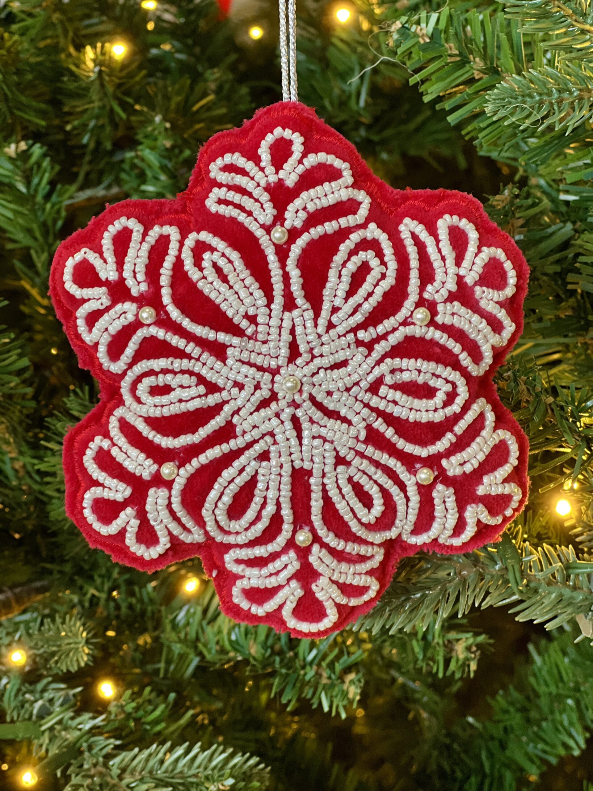 Felt Snowflake Ornament (red and white)